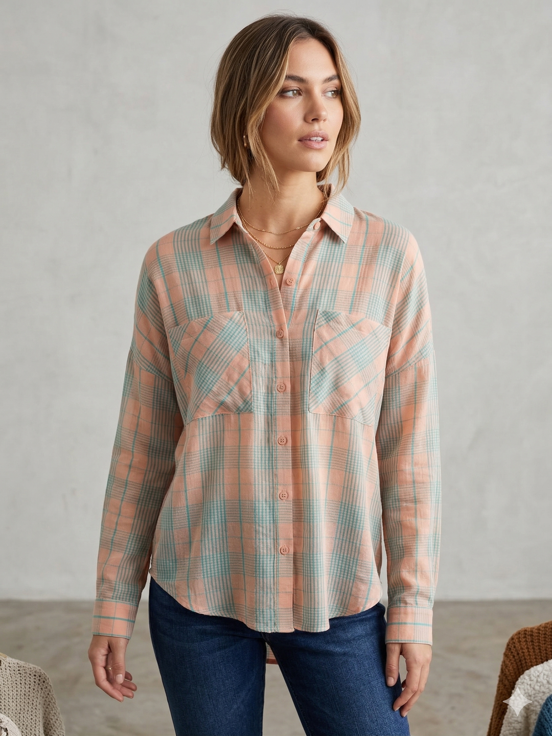Ava Soft Plaid Button Up - Peach