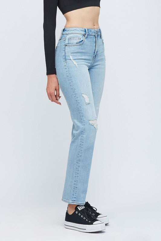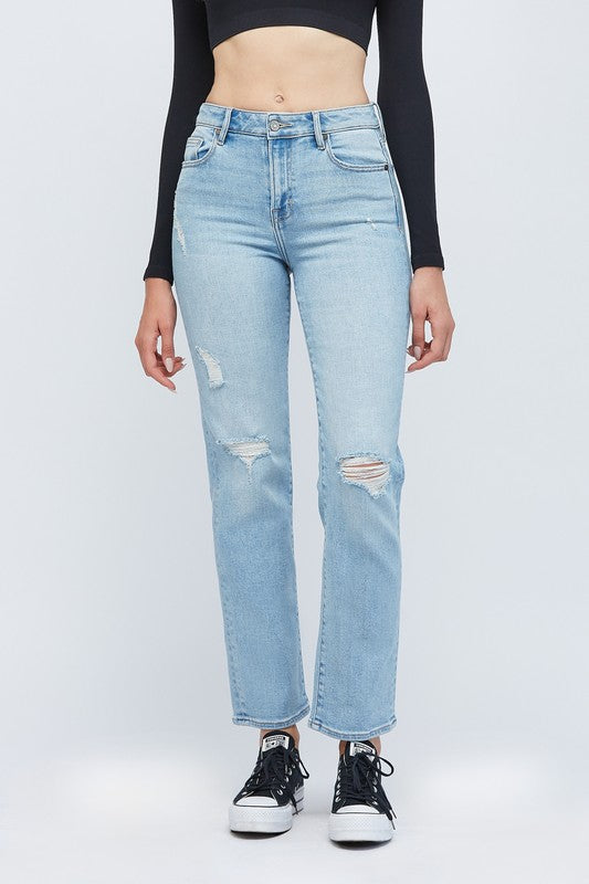 A timeless staple for every wardrobe, these Tracey High Rise Straight Jeans offer the perfect blend of comfort and style. Designed with a flattering high-waisted fit, these jeans elongate the legs while providing a structured yet flexible feel. The classic light wash makes them effortlessly versatile—pair them with anything from a casual tee to a chic blouse. Whether you're dressing up or keeping it laid-back, these jeans are your go-to for effortless, everyday style.