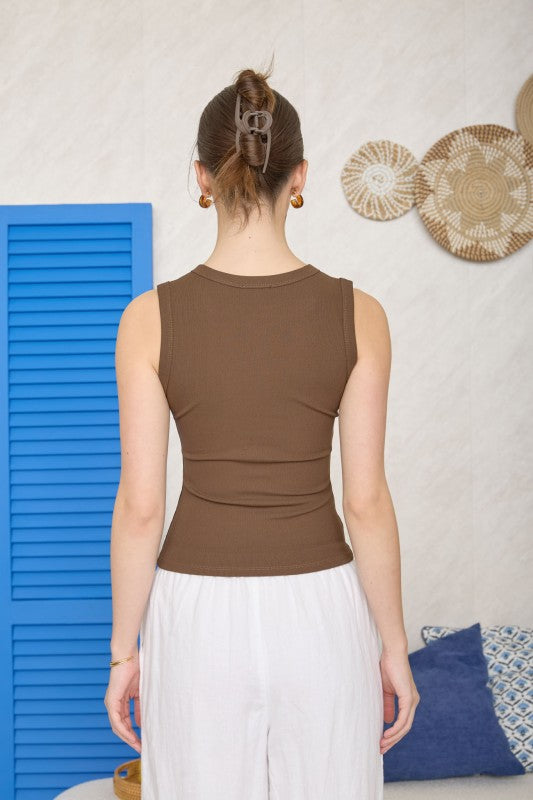 Rich, earthy, and effortlessly elevated — the Harlow Knit Tank Top in Brown is the ultimate foundational piece for a warm, curated wardrobe. Crafted from a premium, soft-touch knit with a subtle ribbed texture, this tank offers a sophisticated alternative to standard cotton basics. The deep, chocolate-brown hue provides a grounded, luxe finish that pairs beautifully with creamy neutrals or classic blue denim, making it a versatile staple for every season.