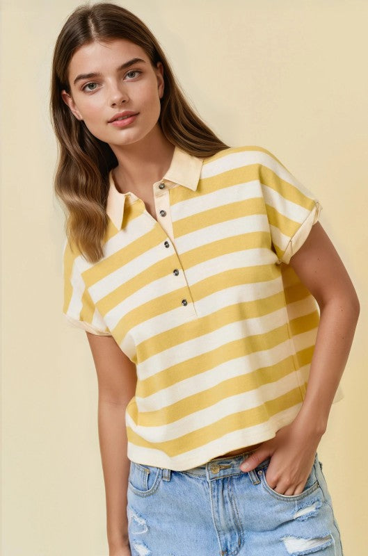 Kara Striped Collared Shirt - Yellow