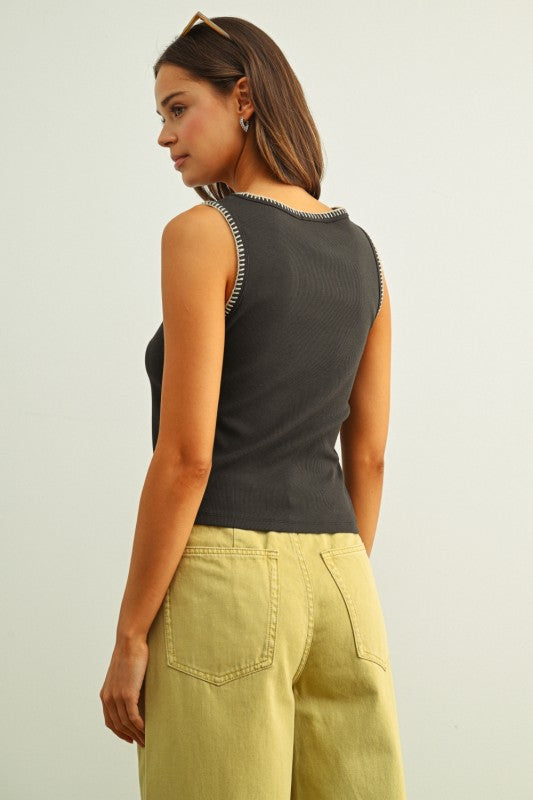 Sleek, essential, and perfectly edgy — the Katelyn Mini Ribbed Tank in Charcoal is the ultimate foundational piece for an effortless, street-style aesthetic. Crafted from a high-quality, ultra-soft mini ribbed fabric, this tank offers a close-to-body fit that feels like a second skin. The deep, smoky charcoal hue provides a sophisticated alternative to basic black, adding a moody, versatile dimension to your layering game.