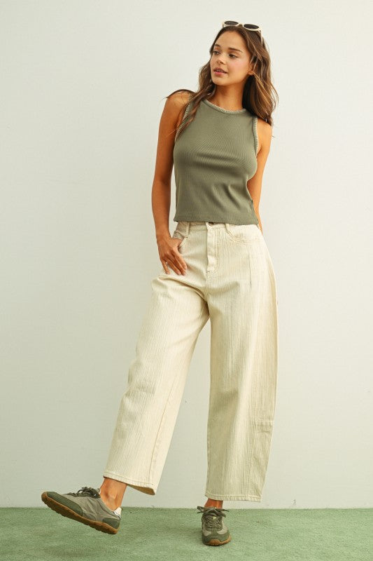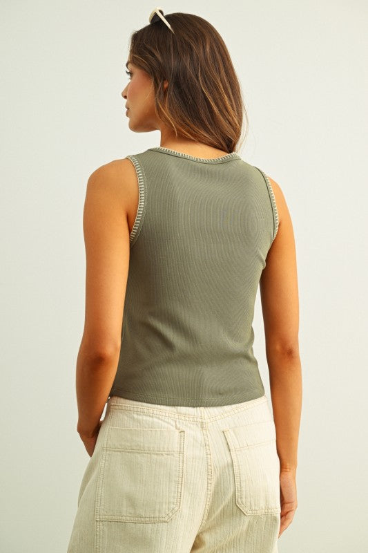 Understated, edgy, and made for effortless styling — the Katelyn Mini Ribbed Tank in Olive is the elevated basic that bridges the gap between gym-cool and street-chic.