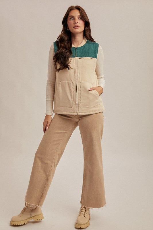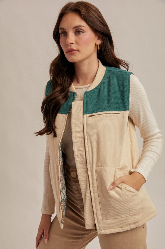Modern, vibrant, and endlessly wearable — the Faith Color Block Vest brings effortless style to every season.
