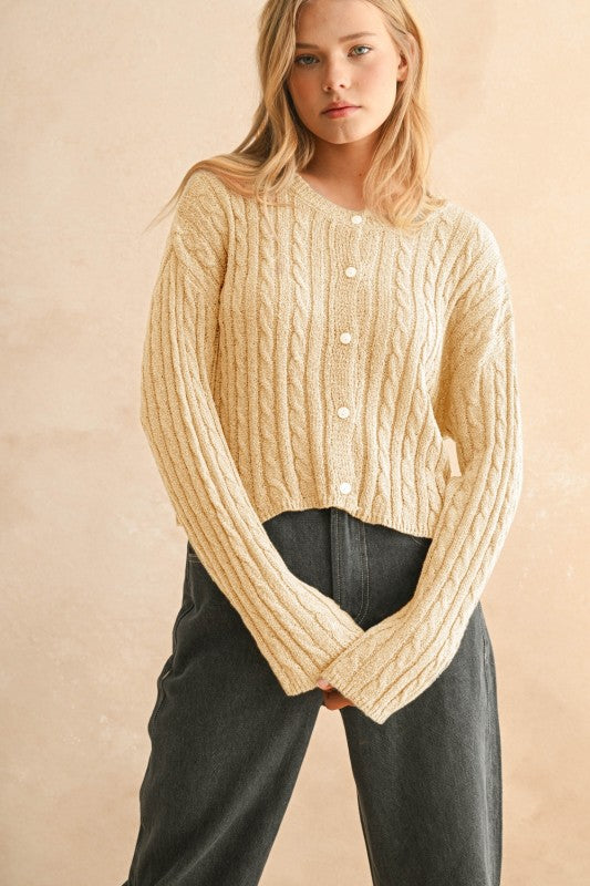 Warm, classic, and beautifully textured — the Vally Cardigan is a staple piece you'll reach for all season long.