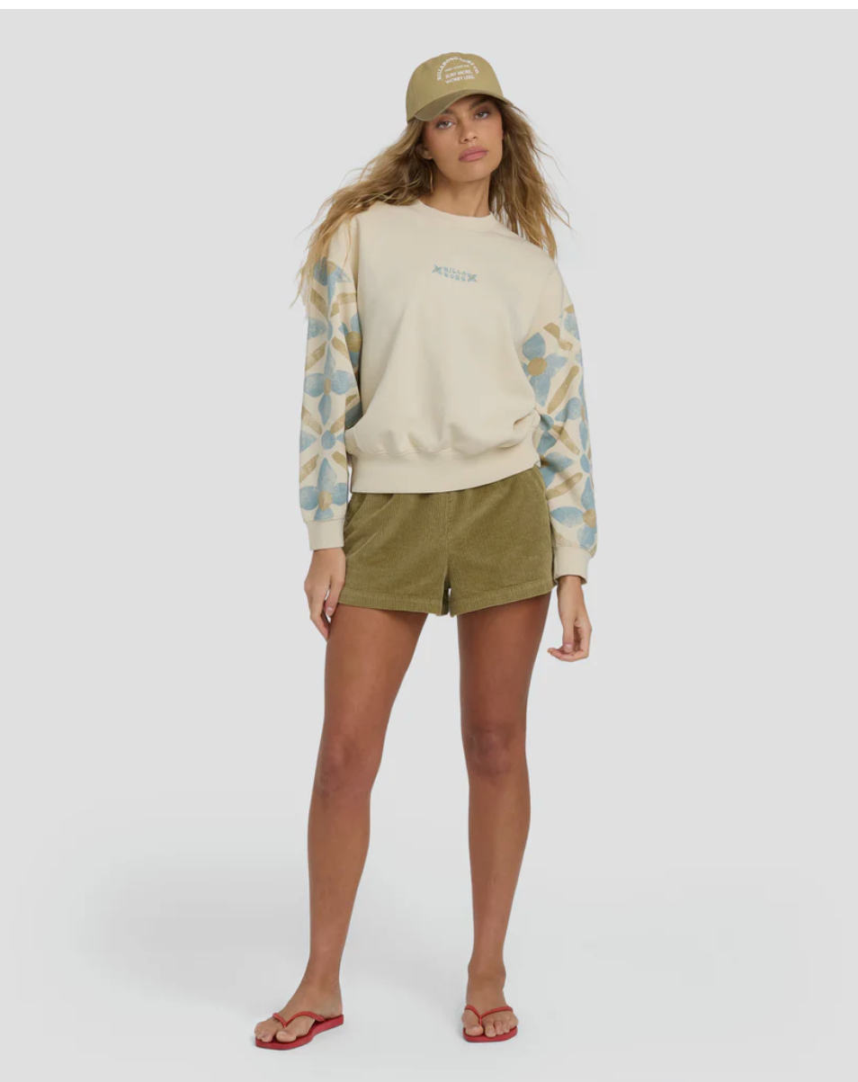 - Pullover crew neck, all over printed sleeves, logo embroidery