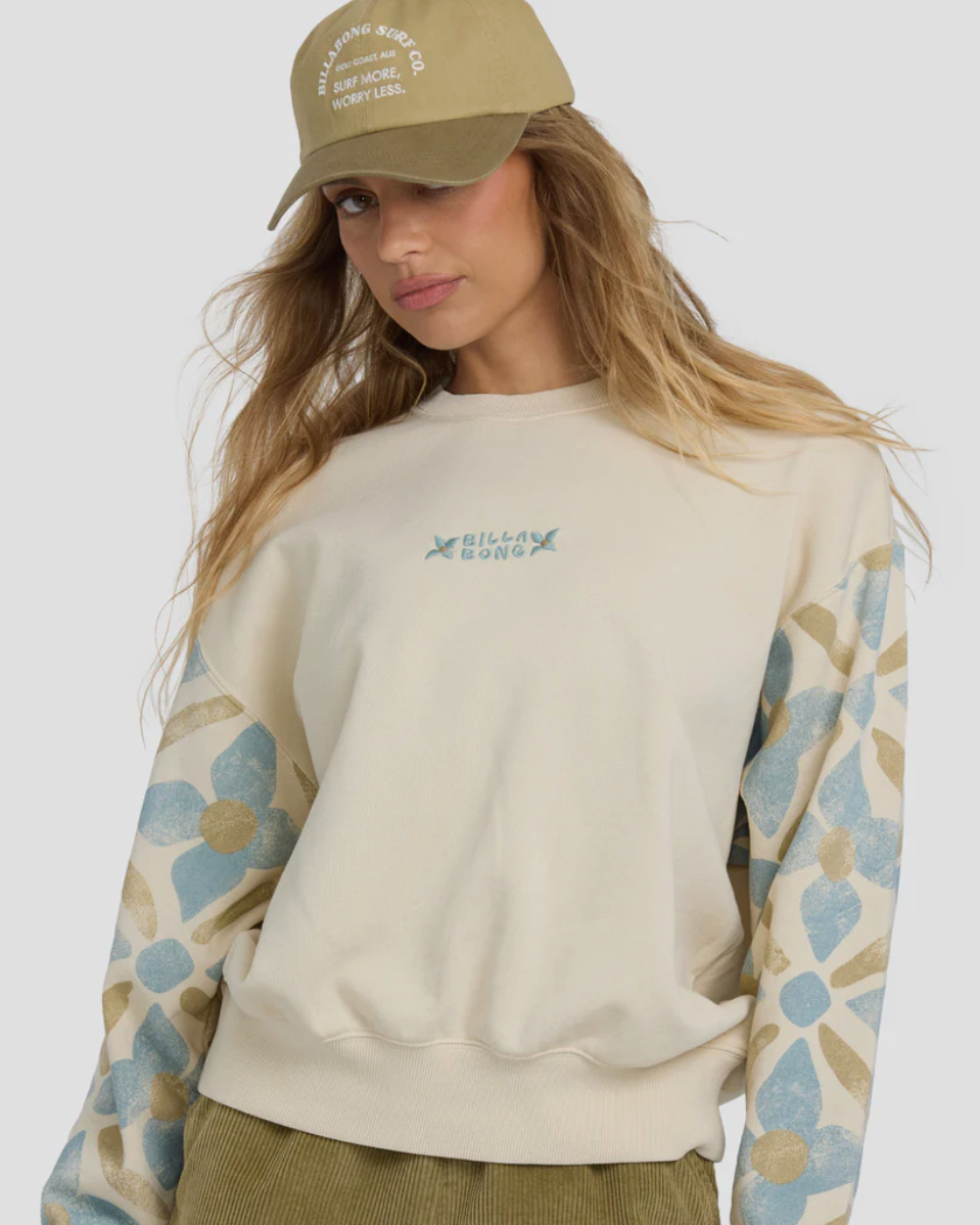 Cozy up in our relaxed-fit crewneck sweatshirt, crafted from soft brushed fleece. The printed sleeves and embroidered logo add just the right amount of style to your laid-back look. Featured here in the White colorway.