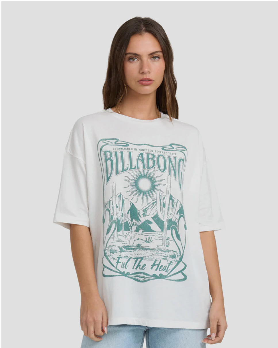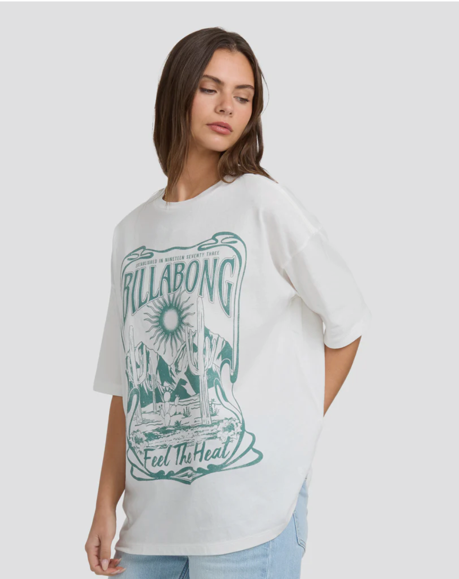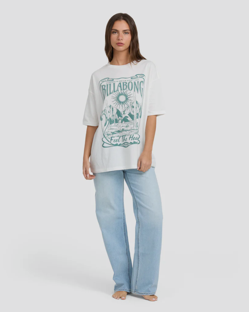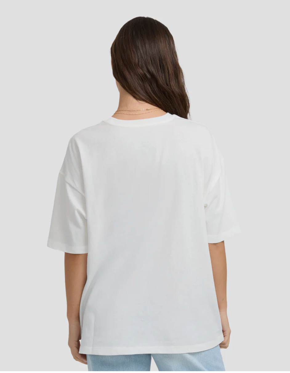 Our oversized crew neck tee brings desert-inspired style to your wardrobe. The 100% cotton jersey and garment wash create that perfectly lived-in feel, while screen-printed details add wanderlust vibes. Featured here in the White colorway.