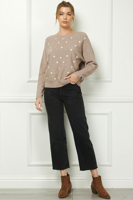 The Rachel Sweater brings floral elegance into your everyday wardrobe — a must-have for sweater season.