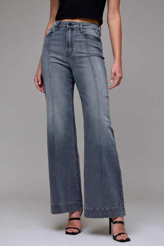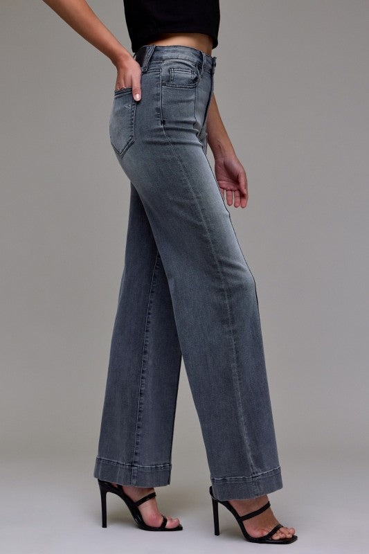 The Megan High Rise Flare Jeans by Hidden are a modern take on a classic silhouette. Designed with a flattering high-rise waist and dramatic flare leg, these jeans elongate your frame while giving your outfit that effortlessly chic, retro-inspired look. Crafted from premium comfort-stretch denim, they hug your hips and thighs before flowing into a flattering wide leg. Perfect for pairing with fitted tops, blouses, or sweaters for an elevated everyday style.